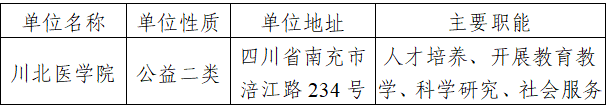 根据《事业单位人事管理条例》、《事业单位公开招聘人员暂行规定》和《四川省事业单位公开招聘工作人员实施办法》等有关规定,经四川省教育厅备案,我单位拟面向社会公开招聘22名工作人员。现将公开招聘有关事项公告如下(本公告同时在四川省人力资源和社会保障厅(以下简称省人社厅)官网[http://rst.sc.gov.cn,下同]“人事考试”专栏、省教育厅官网[http://edu.sc.gov.cn,下同]和川北医学院人才招聘网站[www.zp.nsmc.edu.cn,下同]上发布)。