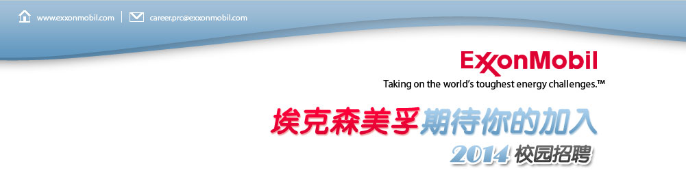 2014年度埃克森美孚大学生校园招募于2013年9月中旬在全国各大院校启动,这是应届毕业生加入埃克森美孚的最佳机会!详情请登录:
