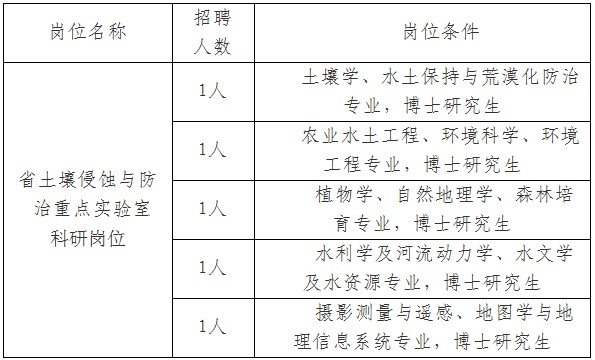据江西省人力资源和社会保障厅网站消息,江西省水土保持科研院发布2014年高层次人才招聘公告,具体如下: