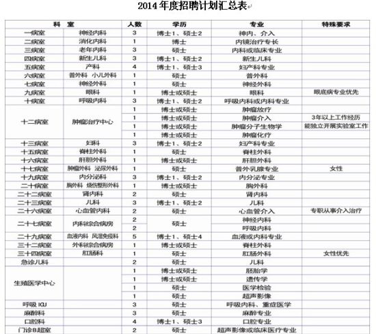 目前,总投资1.8亿元的市重点工程22层新住院大楼已投入使用,医院病室将逐渐增至50个以上,新增病床1180张。因医疗业务发展需要,特向社会公开招聘以下医学专业人才(见招聘计划表)。